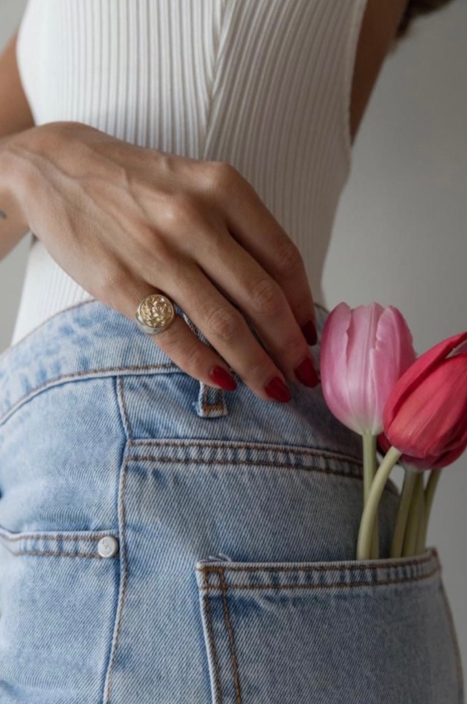 Anel de dedinho feminino, estilo vintage com formato de flor. Modelo delicado e perfeito para fazer mix de anéis!