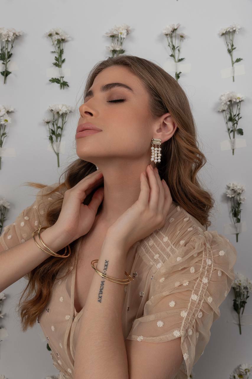 Brinco feminino de pérola orgânica cortina. Essa é uma peça romântica e clássica, um charme para a composição.