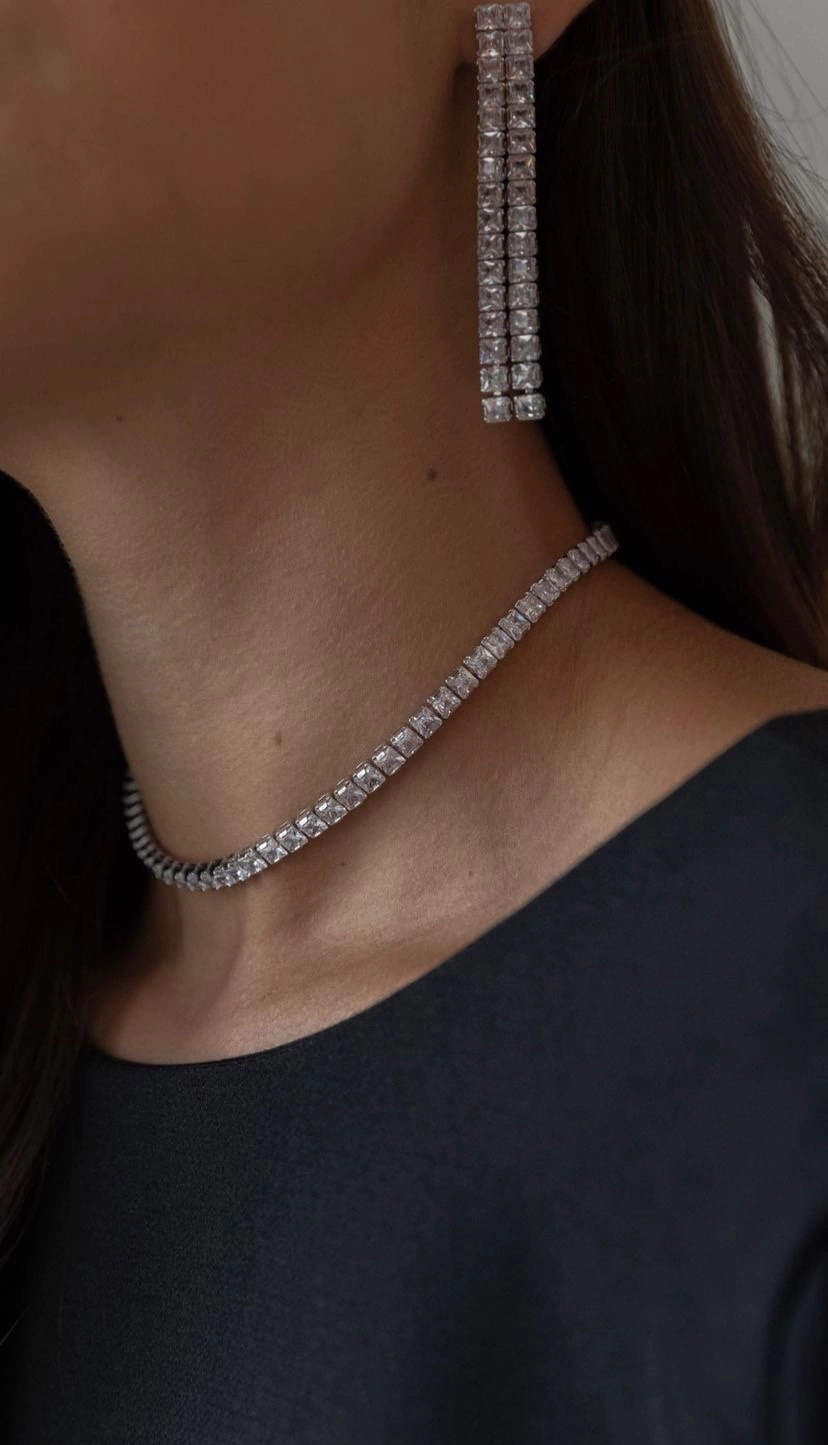 Choker Riviera quadrada com zircônia no banho de Ouro 18k e Ródio Branco.